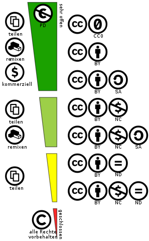 “Creative Commons Lizenzspektrum DE.svg” von JoeranDE, Wikipedia, CC-BY 4.0 International.