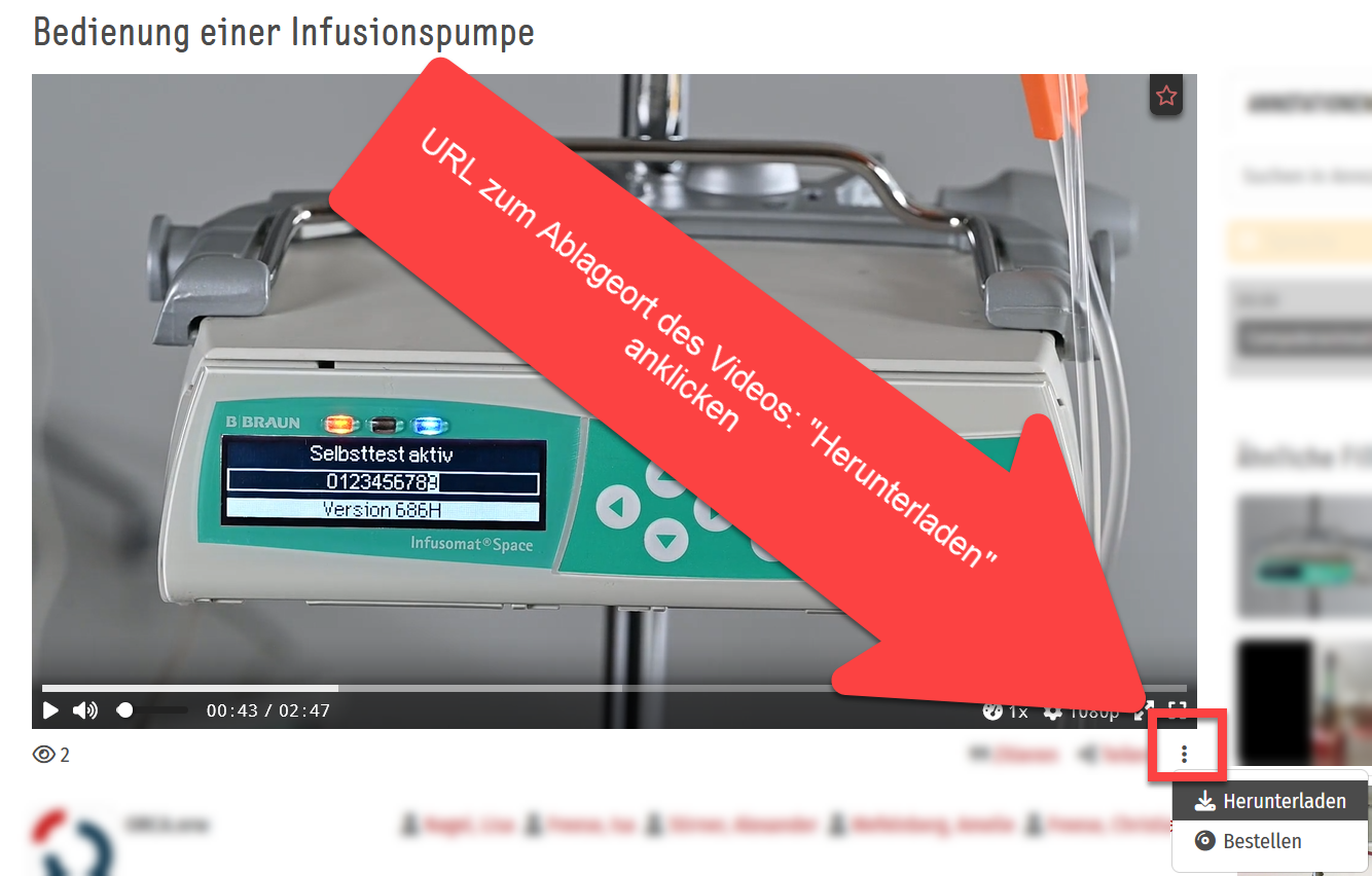 - Suchen Sie nach dem Video (z.B. Nagel, Lisa; Freese, Isa; Stirner, Alexander; Wefelnberg, Amelie; Freese, Christiane: Bedienung einer Infusionspumpe. ORCA.nrw, 2022.