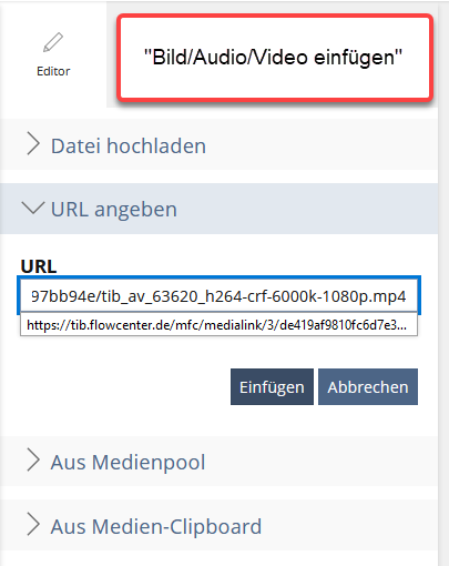 Videos des AV-Portals als Medienobjekte / Video-URL einbinden
